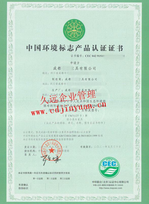 中國(guó)環(huán)境保護(hù)產(chǎn)品認(rèn)證證書(shū)